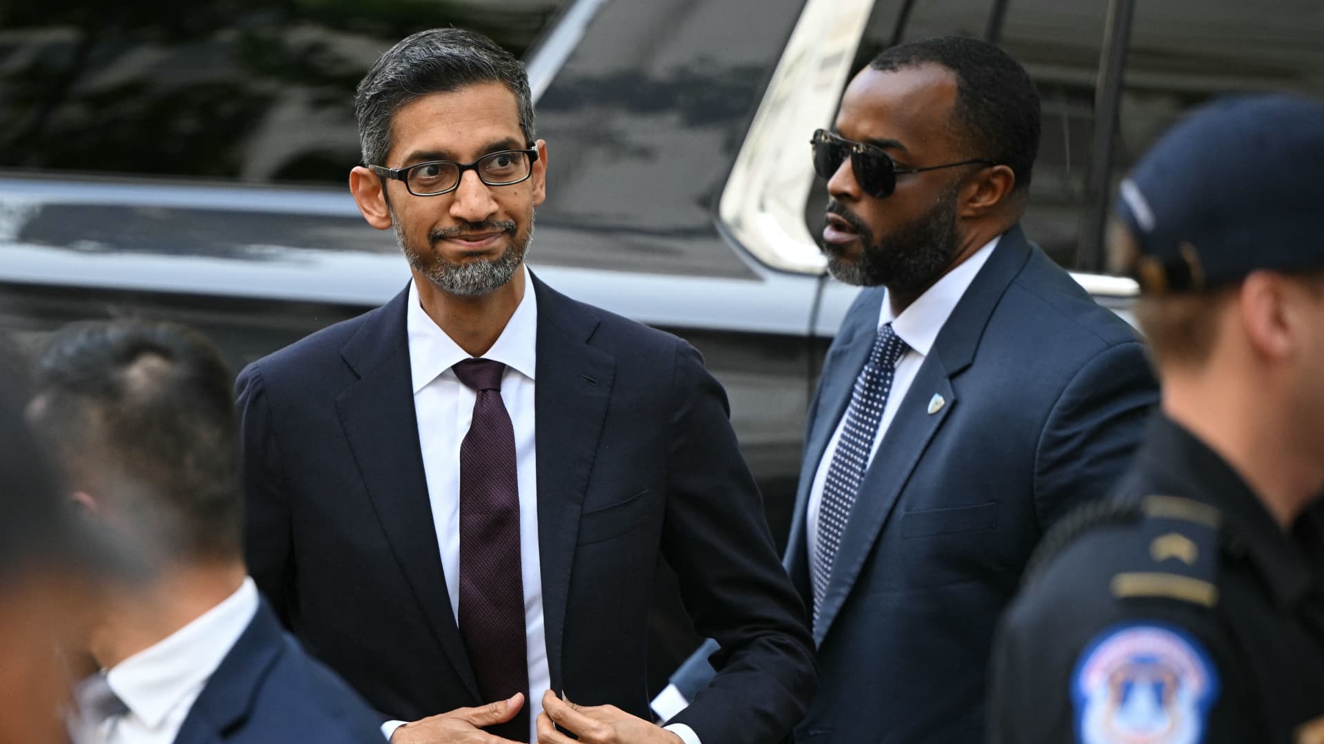 Google CEO Sundar Pichai, arrives for a US Senate bipartisan Artificial Intelligence (AI) Insight Forum at the US Capitol in…