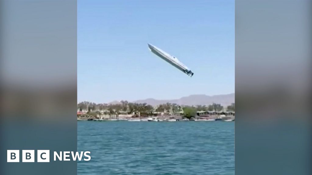 The powerboat flipped several times before splashing down into Arizona’s Lake Havasu. Freedom One Racing, the boat’s builder, told BBC…